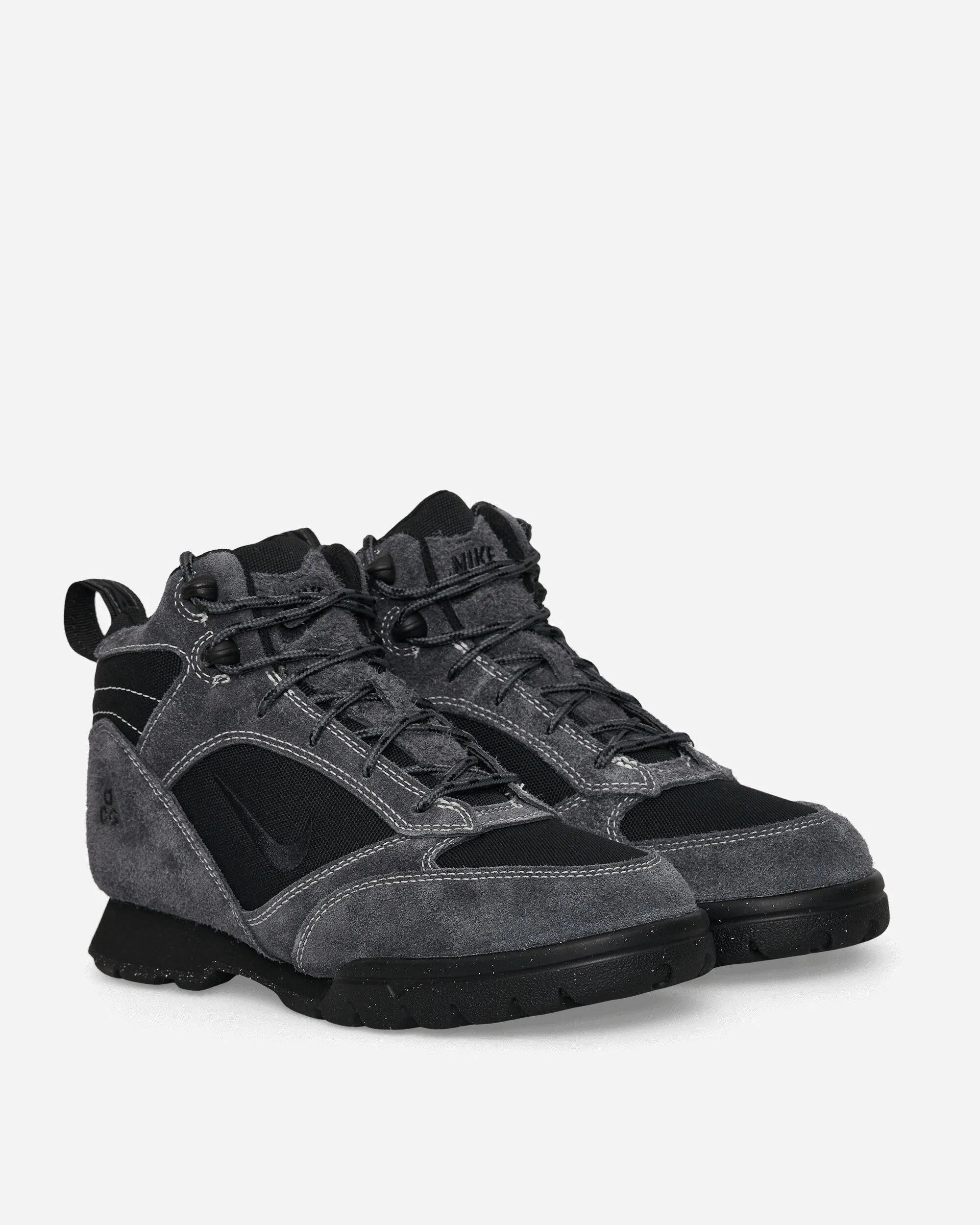 From archives to wild nature. After decades of exploration in forests and mountainous terrain, the beloved 1995 ACG hiking shoe returns with a look perfect for hiking. The waterproof upper combines rough Dark Grey suede with Black fabrics.