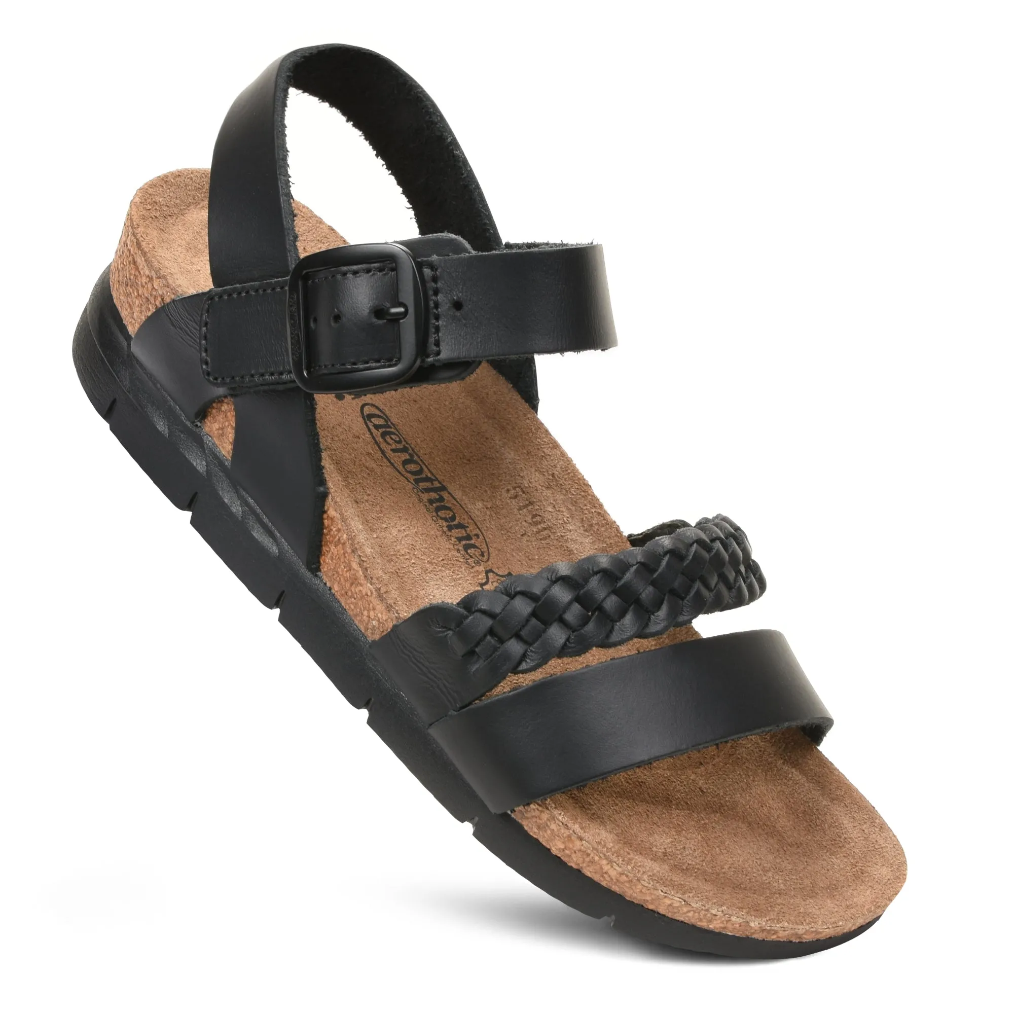 Quinn (LC1418) is an elegantly designed sandal that perfectly balances sophistication with everyday comfort. Featuring a unique blend of plain and braided straps, it creates an eye-catching design that adds texture and visual appeal. Crafted from premium genuine leather, the sandal develops a rich patina over time. Equipped with a natural cork footbed, it contours to your foot for personalized comfort and support. The open-toe design and adjustable metallic back buckles ensure a secure, customized fit while adding a polished finish. Quinn is the perfect choice for those seeking both fashion and lasting comfort.