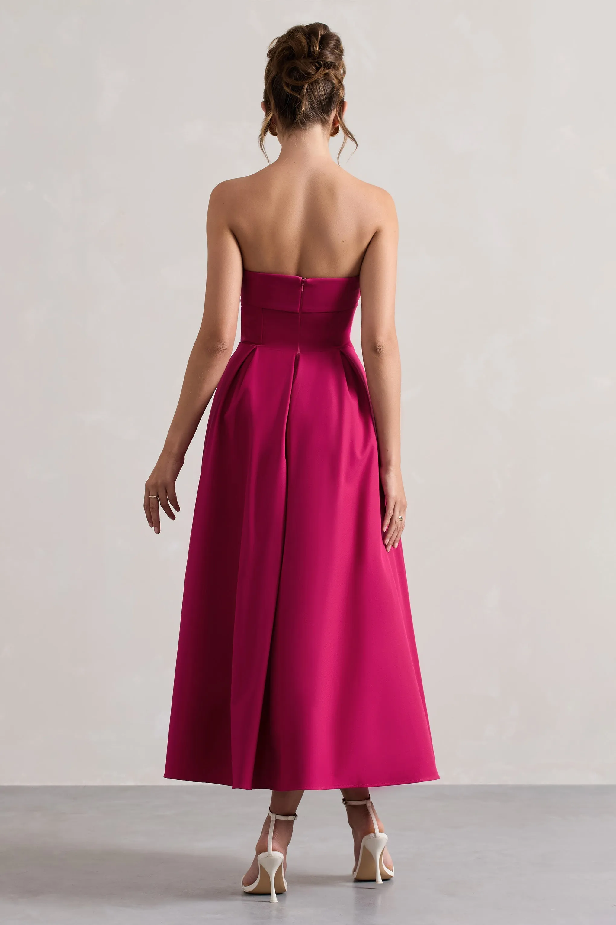 You name the occasion, we have the perfect dress. Crafted in a hot pink shade of our premium stretch crepe, Annalise effortlessly compliments every skin tone. Beautifully flowing with a cinched in waist, this midi dress boasts a pleated skirt that creates an elegant sense of movement. For a timeless race day look, try styling yours with some simple gold earrings and strappy stilettos.