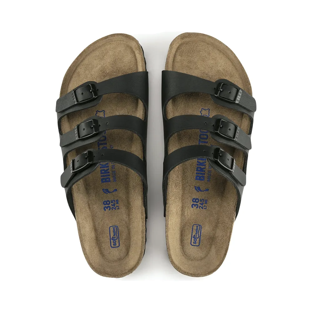 The BIRKENSTOCK Florida is the ideal sandal for anyone who spends a lot of time on their feet. This three-strap sandal offers good grip and maximum comfort. With its additional foam layer, the soft footbed offers extra comfort and pampers feet – all day long. The upper is made from the skin-friendly, hard-wearing synthetic material Birko-Flor® in a sophisticated nubuck look which boasts a texture and color that could almost be mistaken for real leather.