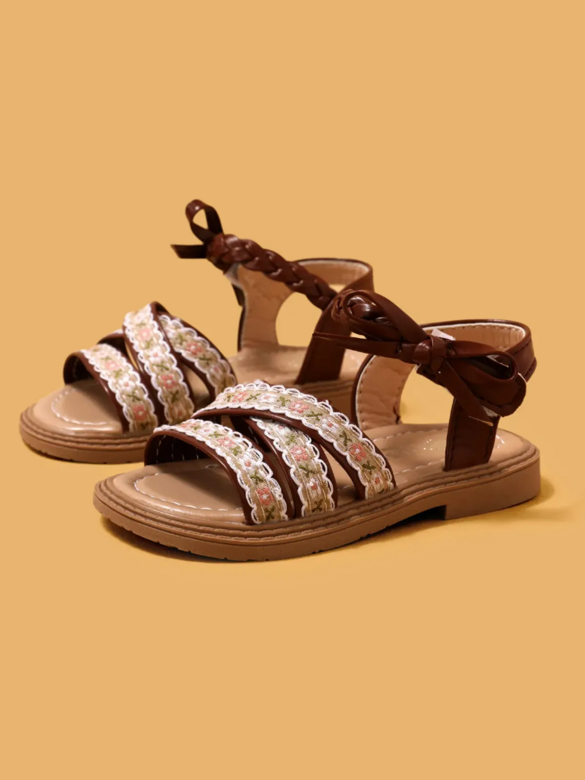 - These charming sandals feature vibrant floral accents and stylish ribbon ties, making them perfect for any sunny day adventure.