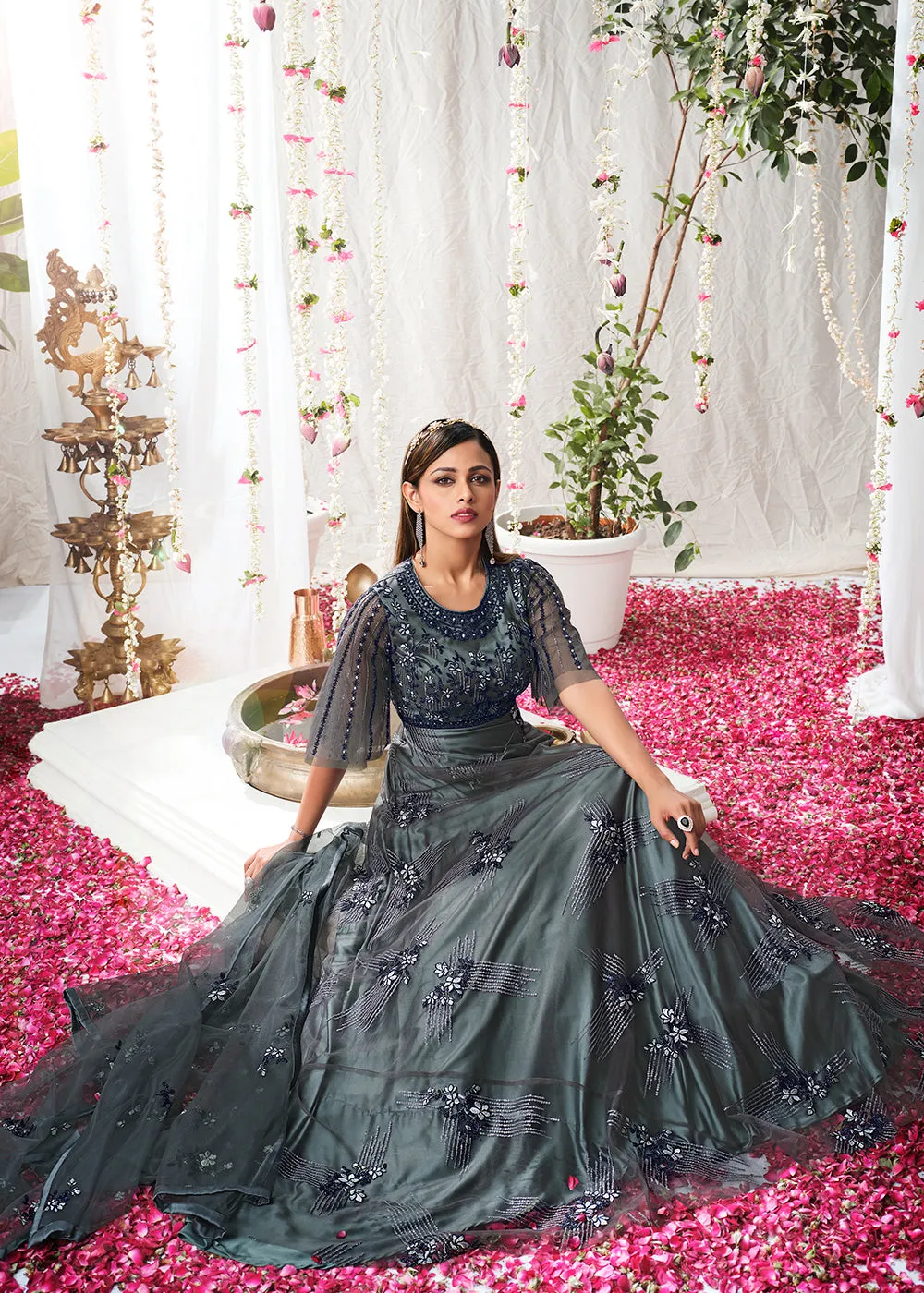 - This Charcoal Grey stylish and easy-to-wear anarkali suit is the perfect choice for a festival, party, and wedding season.