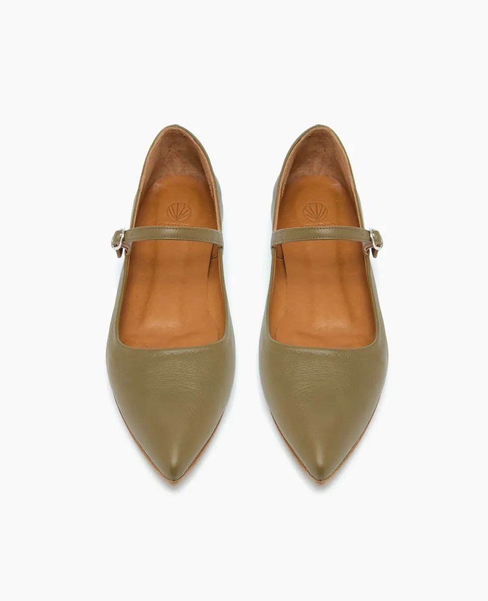 The Dream Flat blends timeless charm with modern comfort. Crafted in artichoke green leather, this pointed-toe flat exudes understated elegance, complemented by a slim Mary Jane strap with an adjustable buckle for a secure and refined fit. Coclico’s custom construction provides a featherlight feel and effortless fit, while a slight built-in wedge adds subtle lift. With its clean design and versatile color, the Dream Flat transitions seamlessly from casual to polished settings.