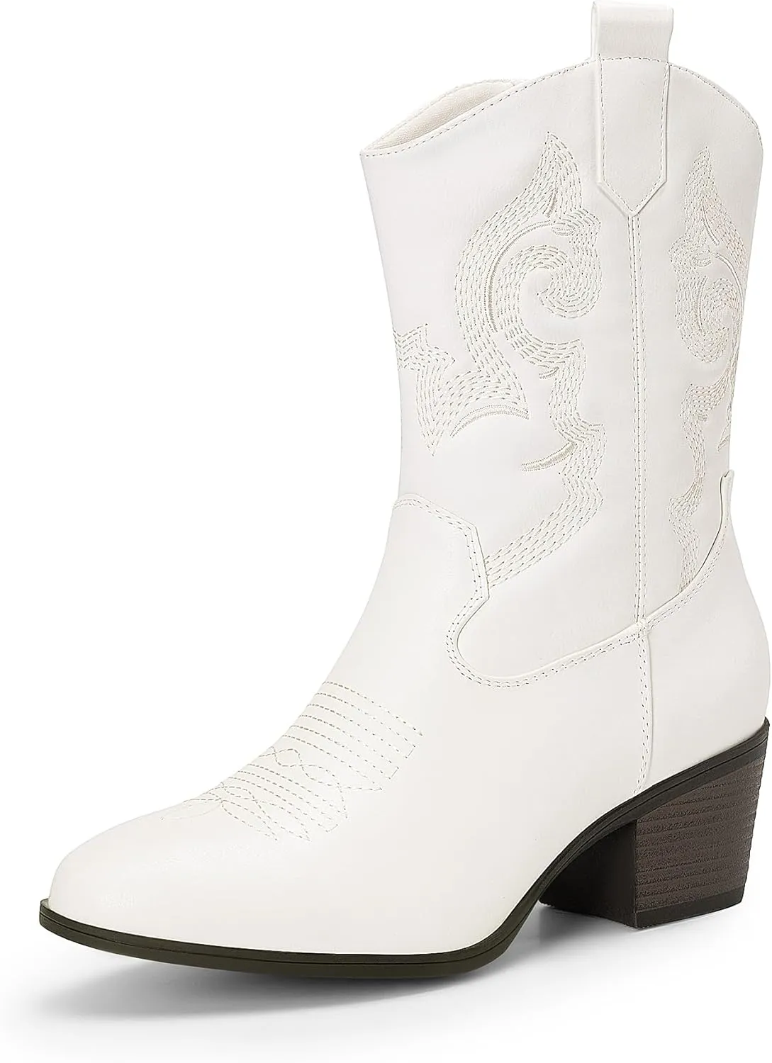 DREAM PAIRS Cowboy Boots for Women, Mid Calf Cowgirl Boots with Embroidery Round Toe Western Chunky Low Heel Shoes