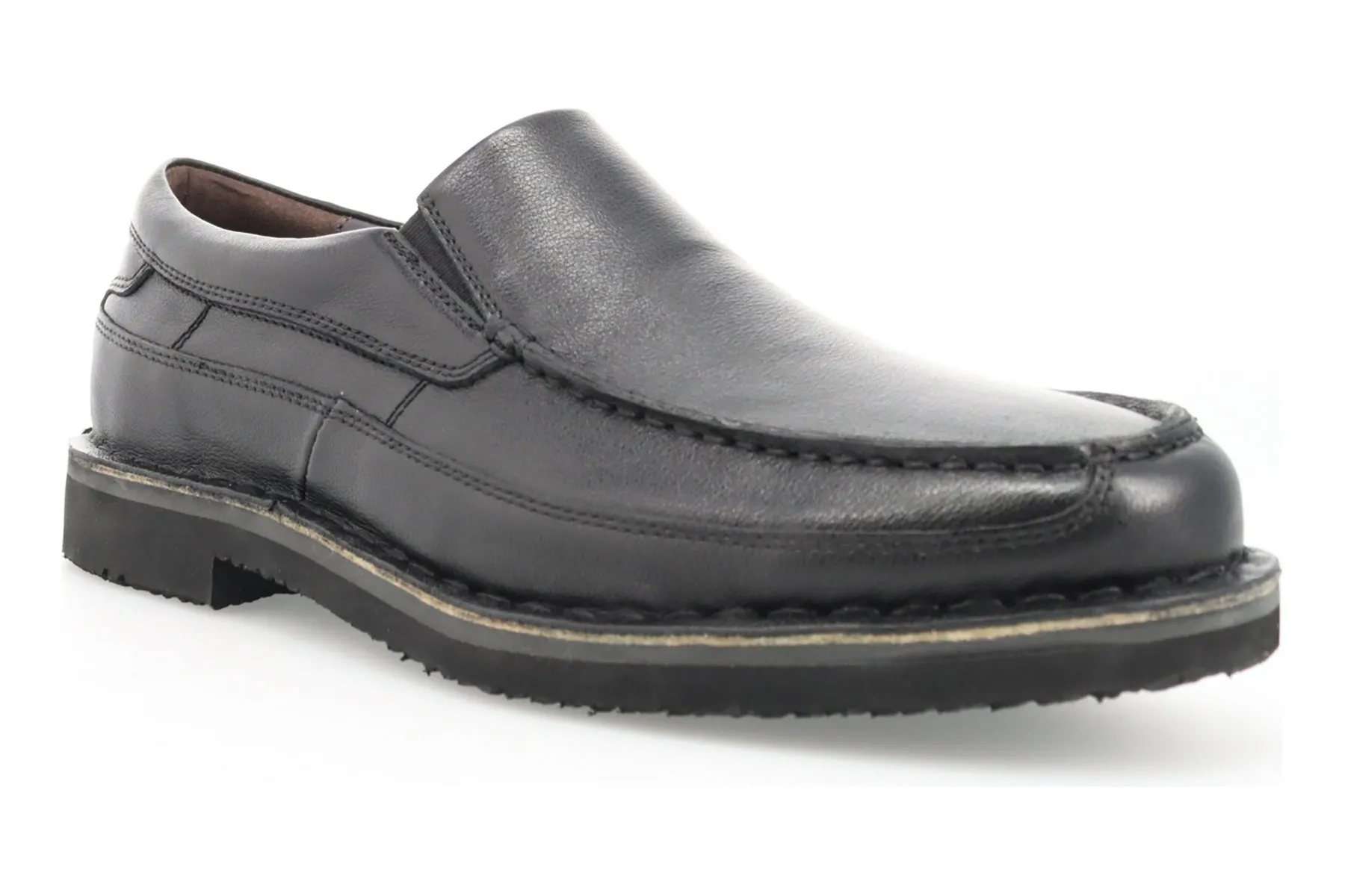Propet Flynn is a durable slip-on loafer. These stylish shoes feature leather uppers with twin gores, cushioned EVA midsole and durable rubber outsole. A round moc toe, removable footbed and high density open cell foam insole makes these loafers ideal for special events.