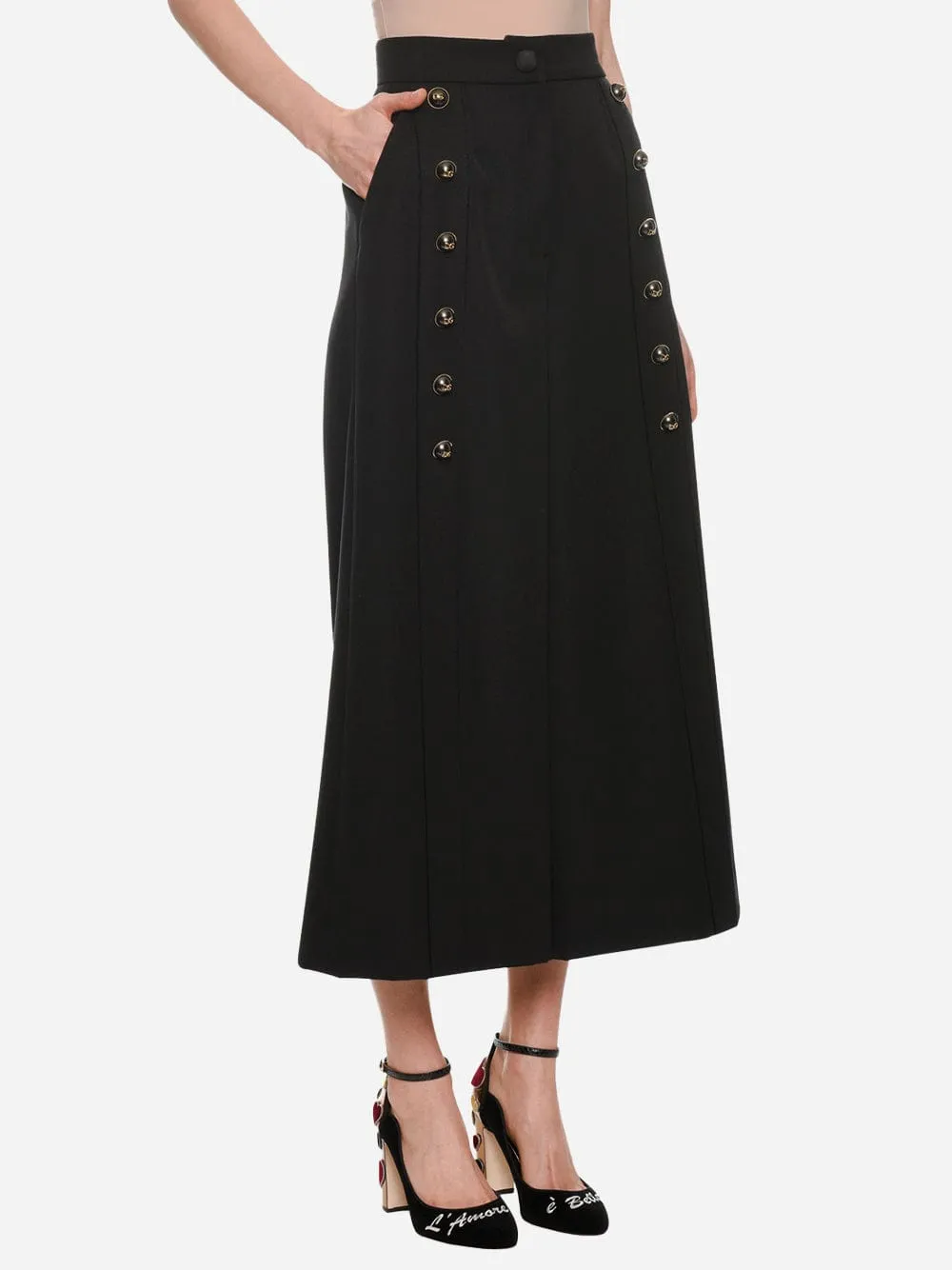 These Dolce & Gabbana Gabardine Wide-Leg Sailor Gaucho Pants are a refined take on the classic sailor pant. Cut from a smooth wool-blend fabric, they feature an elasticized waistband and side pockets. The wide legs are cropped at the ankle for a modern silhouette that works well with sandals or stilettos.