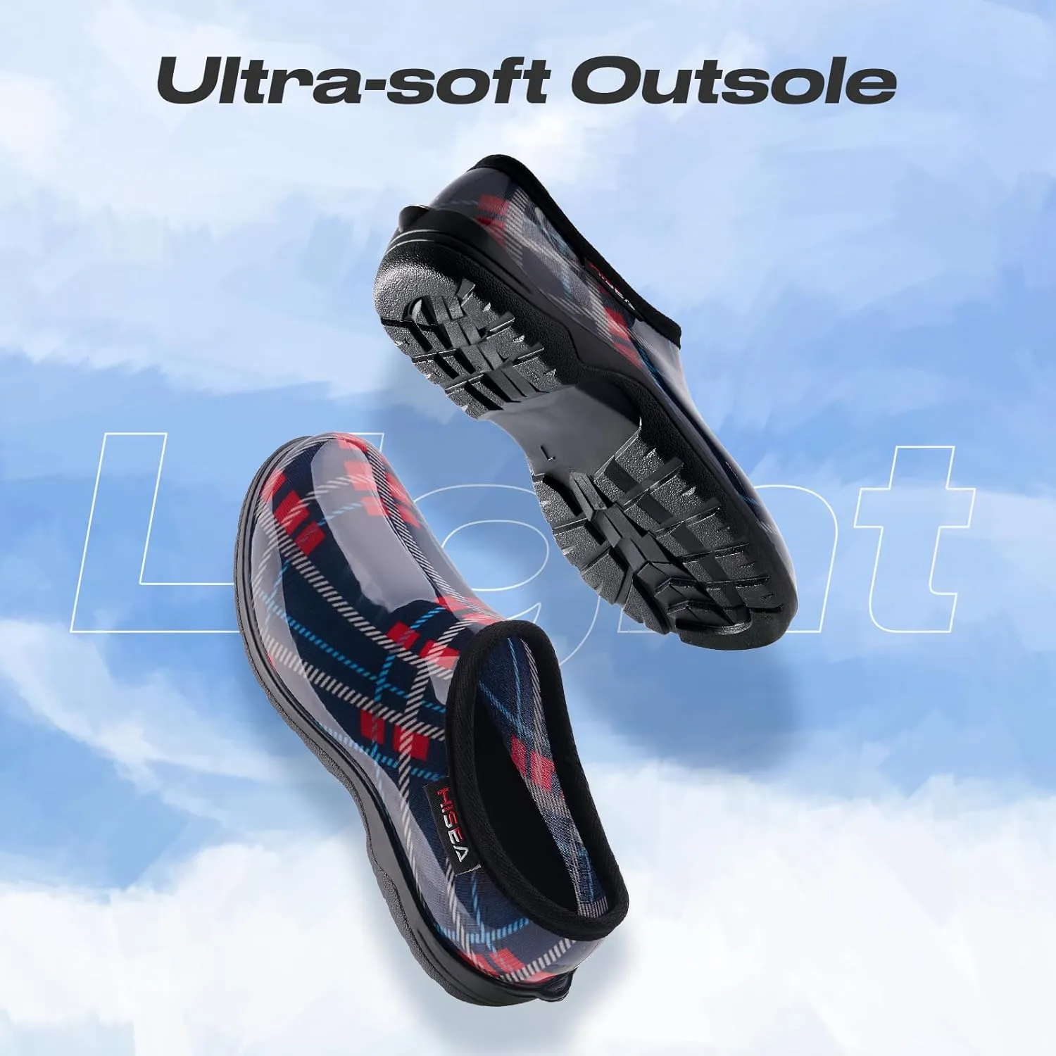 HISEA Waterproof Garden Shoe for Women Outdoor Slip-On Rain Boots Rubber Rain Shoes Short Ankle Booties and Garden Clogs with Comfort Insole