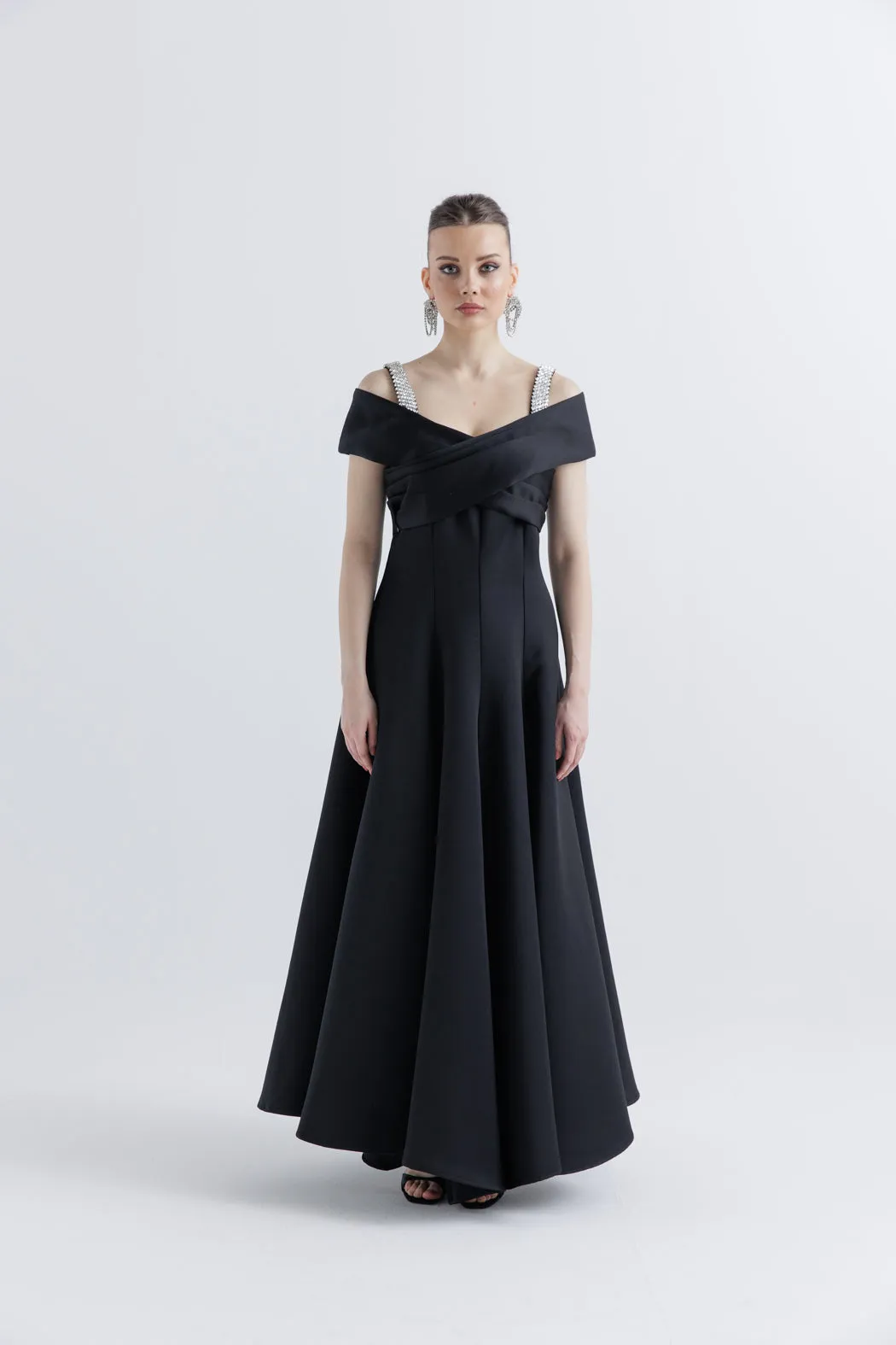 Step into the spotlight with this show-stopping off-shoulder gown, designed to captivate with its dramatic elegance and exquisite craftsmanship. A fusion of modern sophistication and timeless allure, this masterpiece is the epitome of high-fashion glamour.
