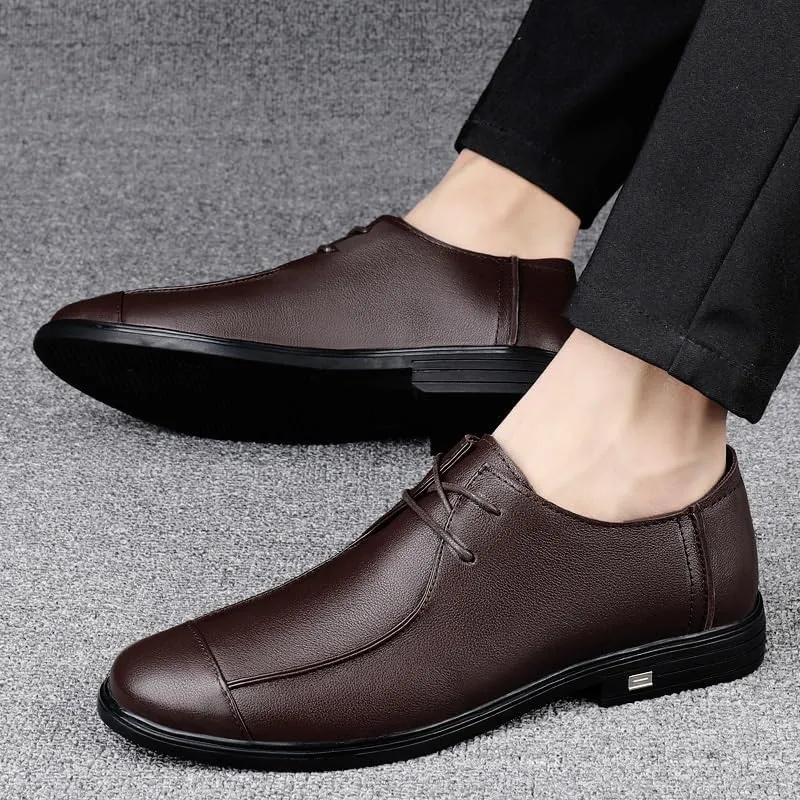 - Genuine Leather Upper: Crafted from smooth genuine leather, these dress shoes provide a polished and sophisticated appearance, perfect for office wear, weddings, and evening events.