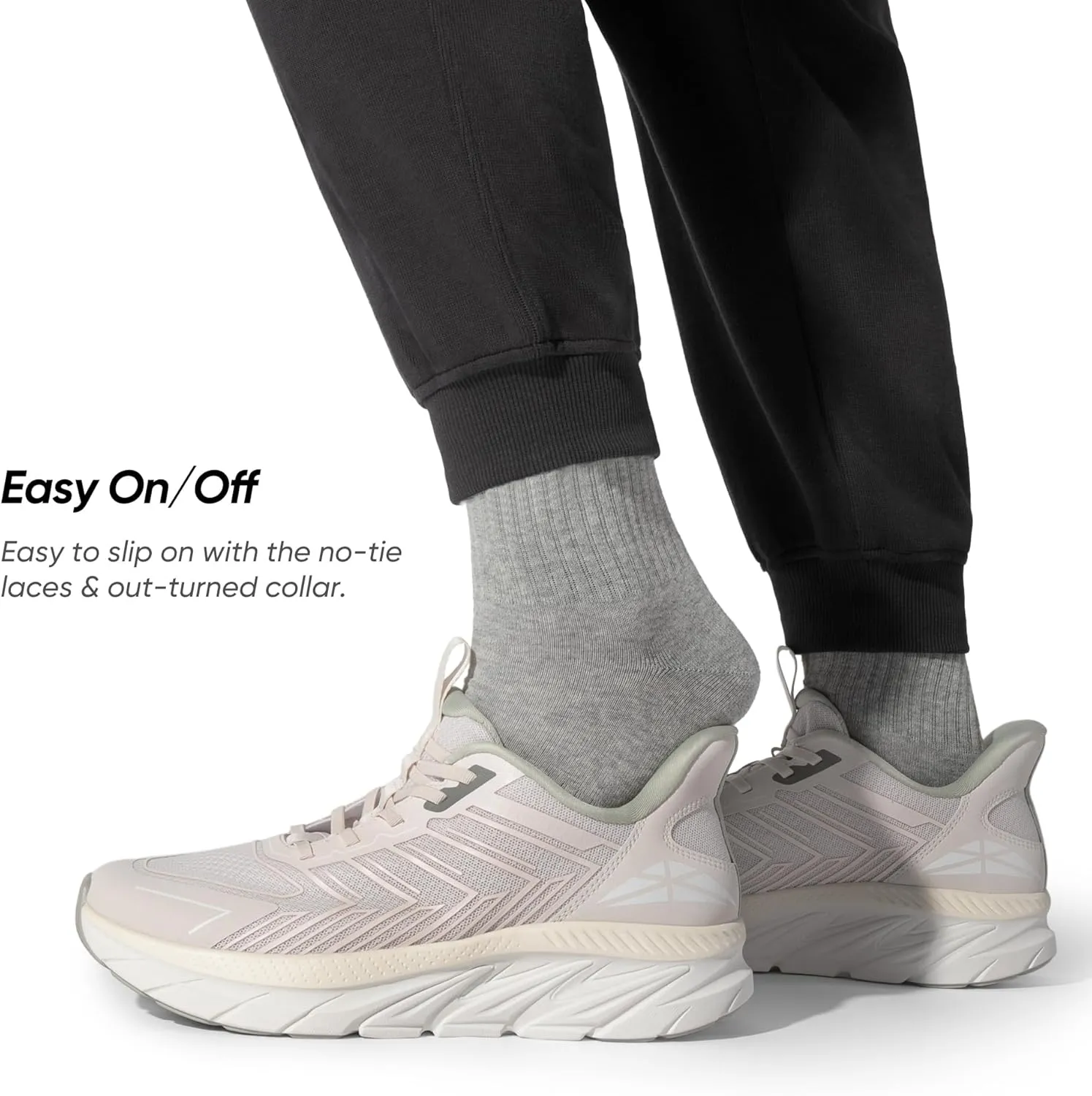 • Effortless Wear: Easily slip on and off these walking shoes with the out-turned collar and elastic no-tie laces, ensuring hassle-free convenience.