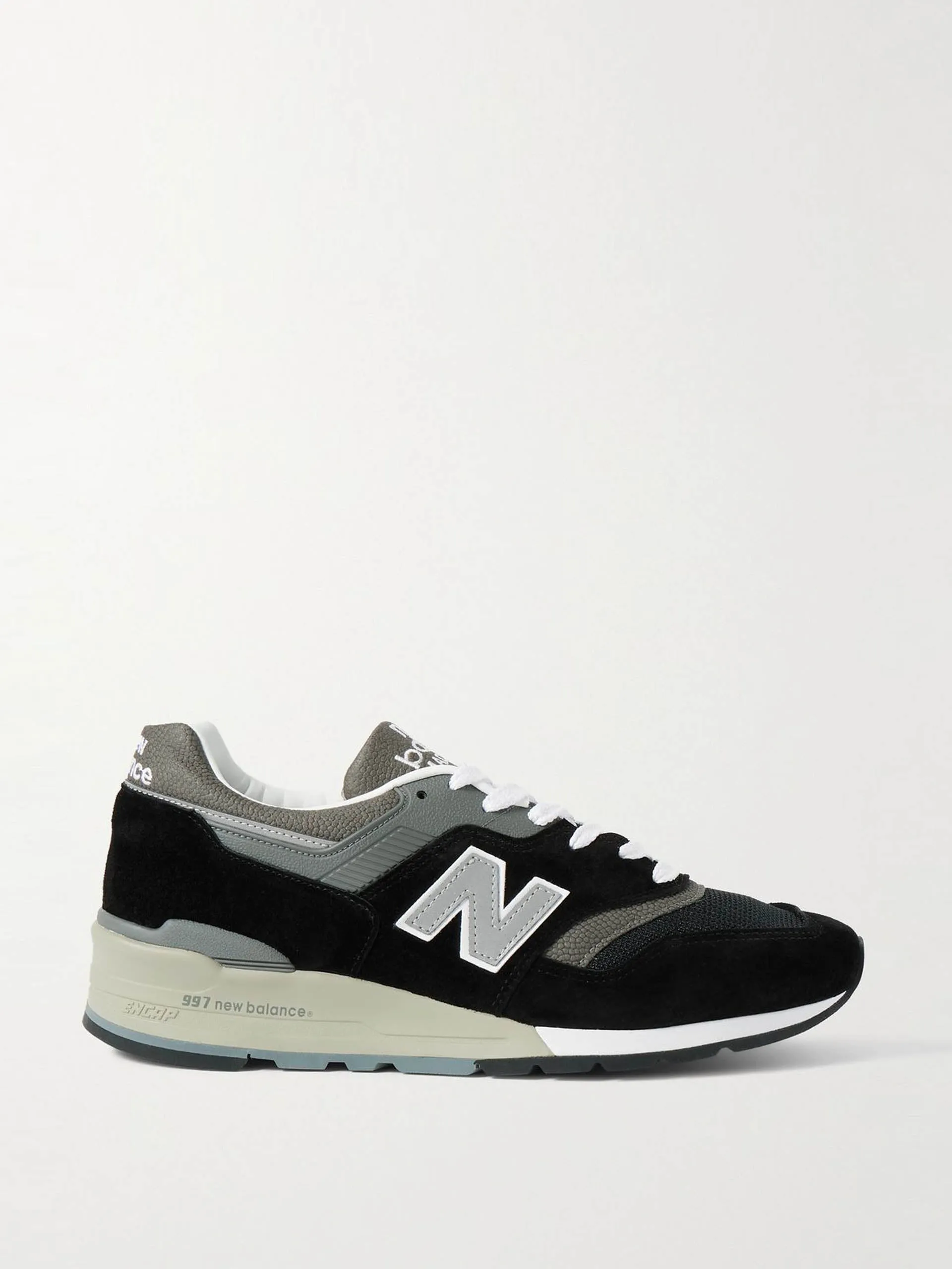 First released in 1991, New Balance revives its iconic '997' sneakers in a tonal-grey colourway for the first time in five years. Made in the USA from panels of suede, mesh and leather, they have comfortable ENCAP midsoles for cushioned support.