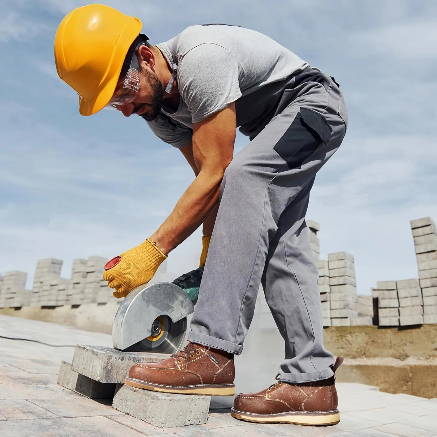 - [Dependable Longevity]: Crafted using the traditional Goodyear Welt Construction, these mens soft toe work boots are the best in terms of durability, solidity, water resistance, and longevity. Featuring premium waterproof full-grain leather uppers, and oil & slip-resistant rubber lug outsoles, they provide secure footing in slippery conditions and deliver exceptional abrasion resistance for your work needs.