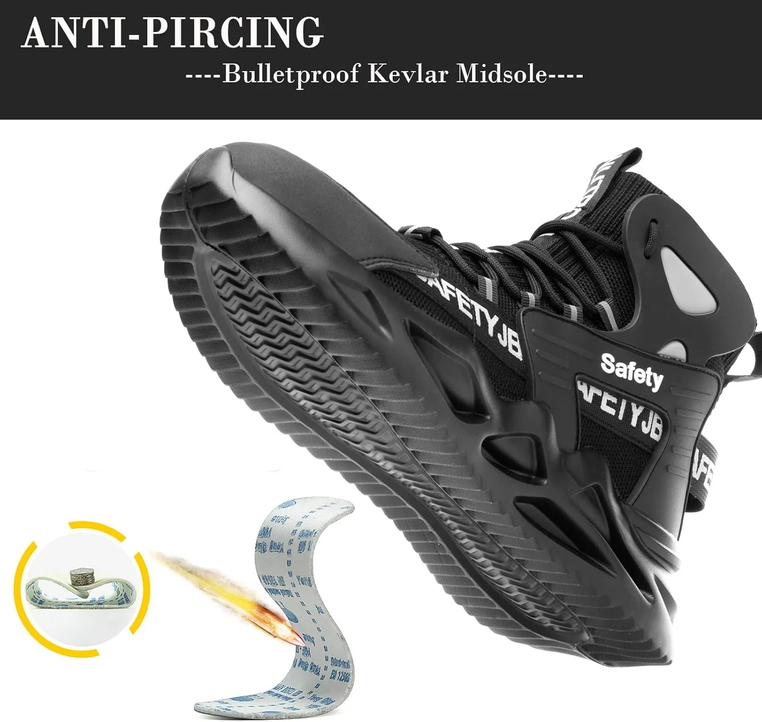 • Puncture& Slip Resistance: Puncture-proof midsole, thickened and wear-resistant Rubber bottom with anti-skid pattern design to deliver the safety against puncture-resistant and non-slip from the workplace and environmental hazards.