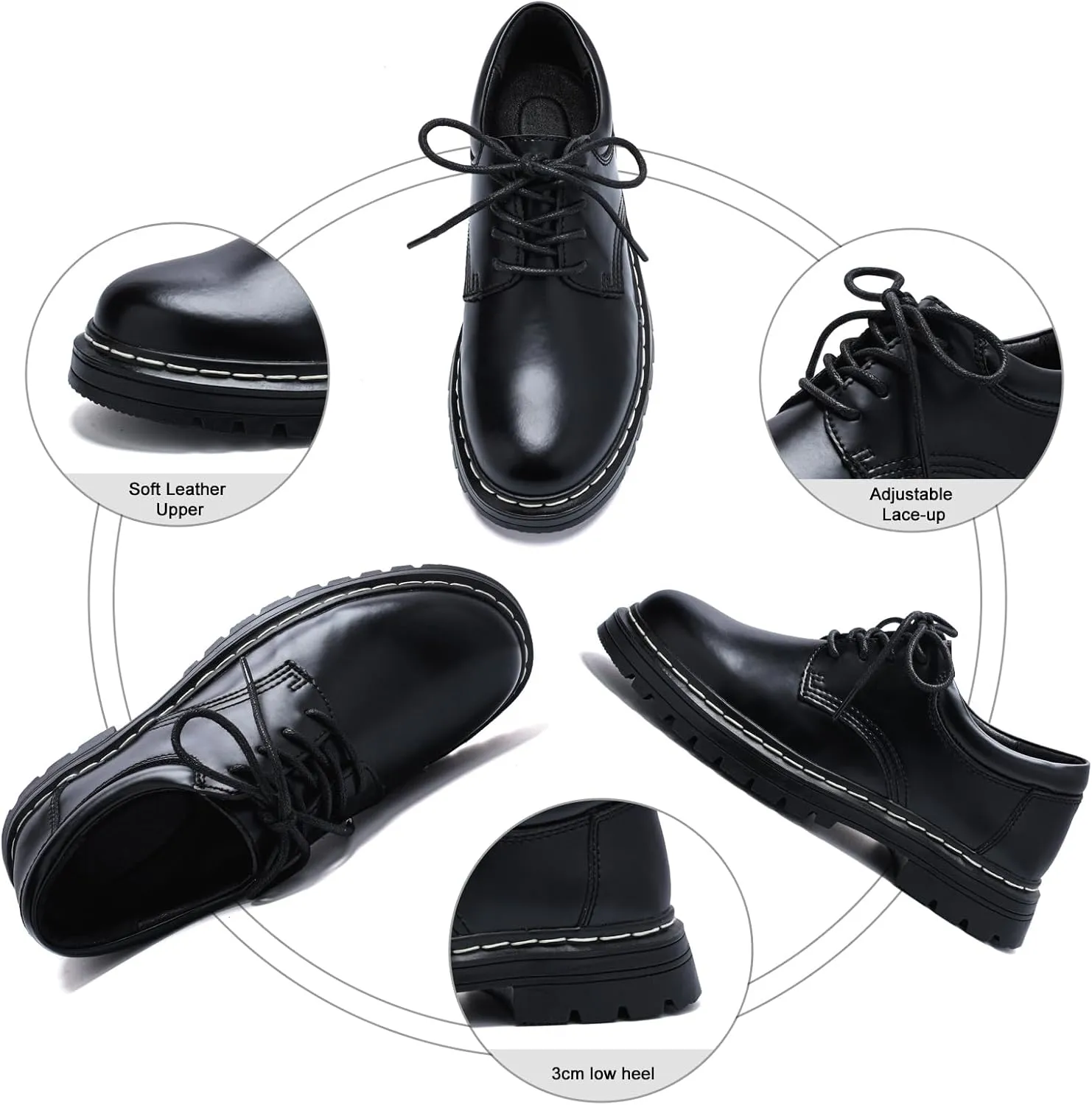 - [CLASSIC LACE-UP & ROUND TOE]: The lace-up closure allows adjustable tightness for narrow/wide feet, while the roomy round-toe design prevents toe crowding. Featuring a memory foam footbed, these minimalist Oxford shoes maintain all-day comfort.