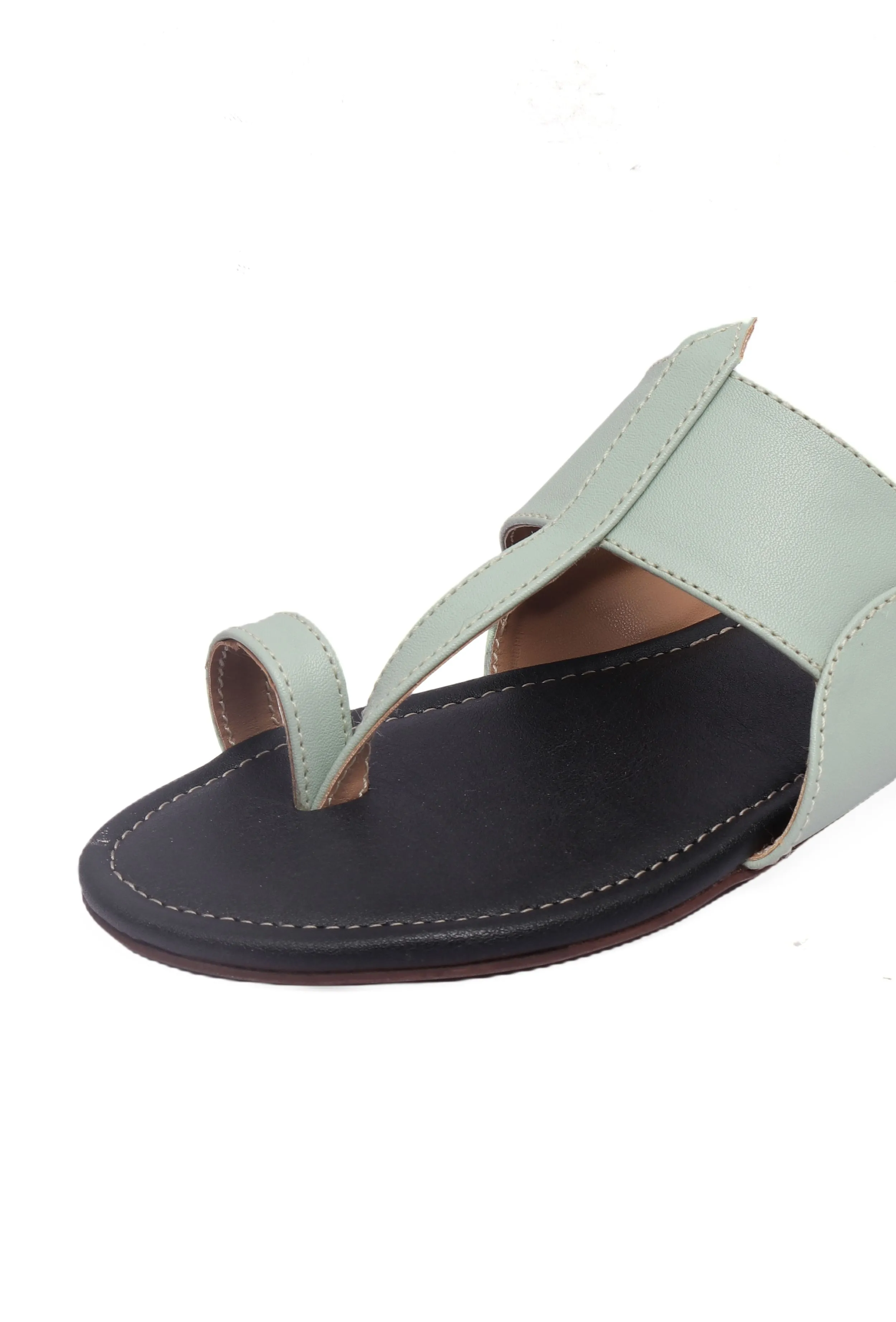 Flats are the styles we always love turning to! And this pistachio green and black kolhapuri inspired strappy slip-on is one such pair which is sure to become your favourite. Handcrafted in genuine cruelty-free leather, the flat features insole cushion padding that will ensure extra support to your feet. Grab it and flaunt it as it will look perfectly polished with all your traditional outfits.