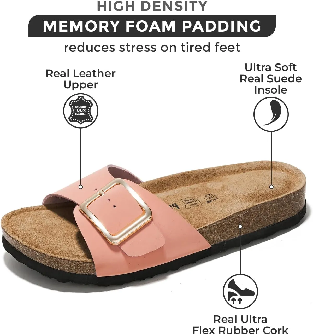 - % : The genuine suede insole offers a plush, comfortable feel underfoot, making these sandals perfect for all-day wear. Nothing to worry about long walks with this Sandals.