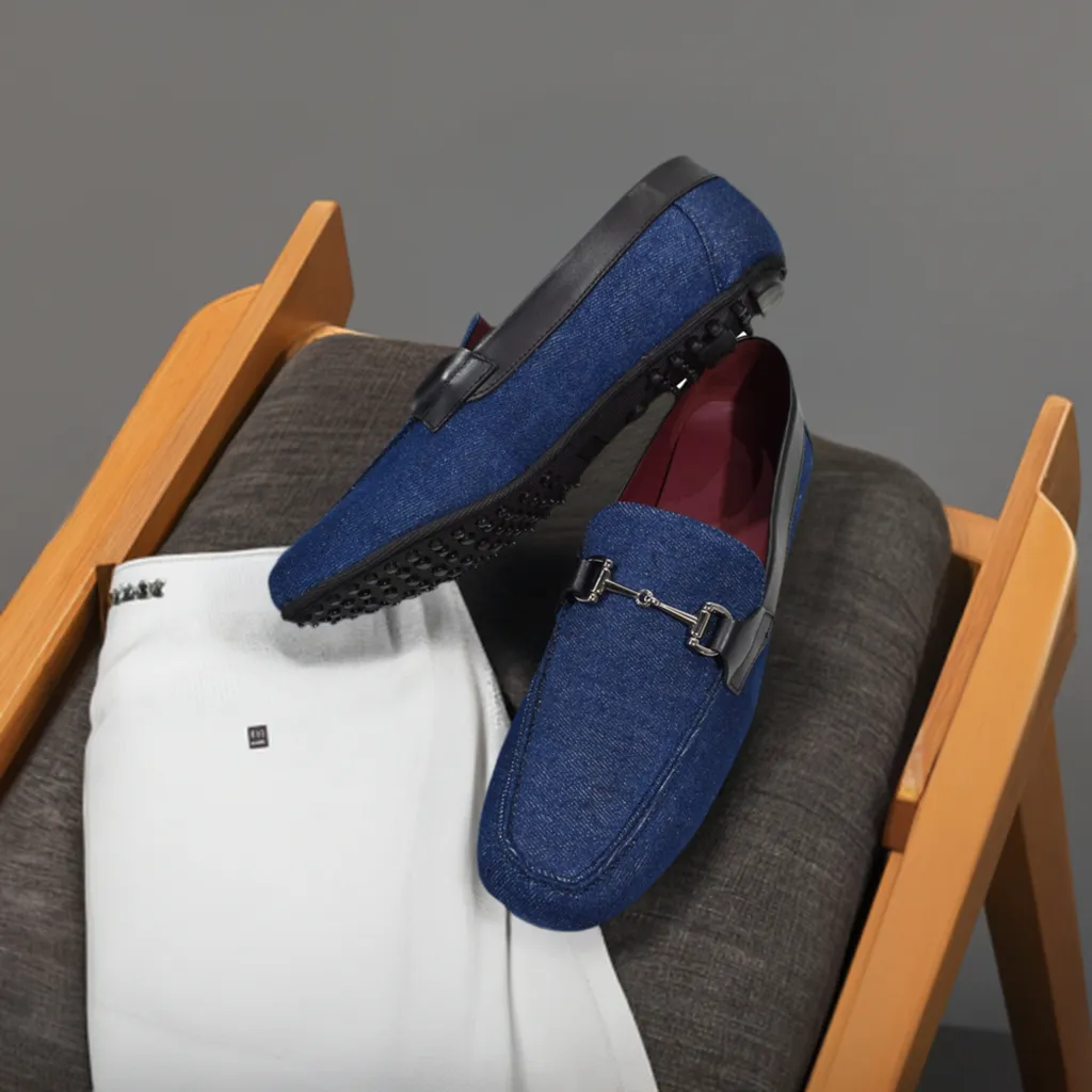 Look cool while keeping comfy with our S126 Denim Moccasins! This classic-fit shoe features jean fabric with leather trim, gun metal accessories, and a sporty rubber sole -- meaning you can rock these shoes all day without getting sore feet. Denim never looked so cool! Don't miss out on this one of a kind statement piece!