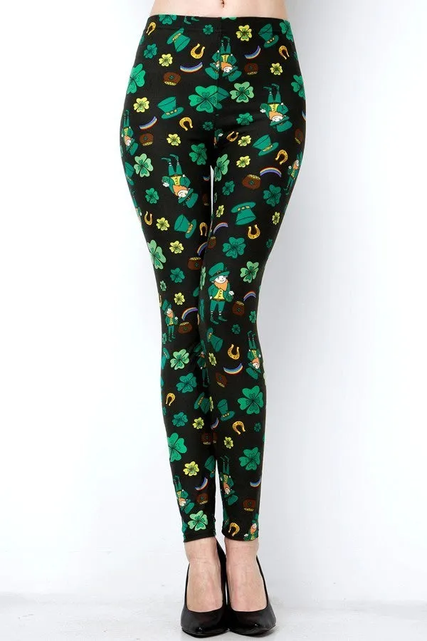 - Bring your wardrobe to the next level with this super soft and cute buttery soft ankle legging, featuring Shamrocks and Horseshoes. Because of its smooth and comfortable fit, you can wear these anywhere and anytime. Dress it up with an oversized top and a pair of sneakers for a casual day ensemble.