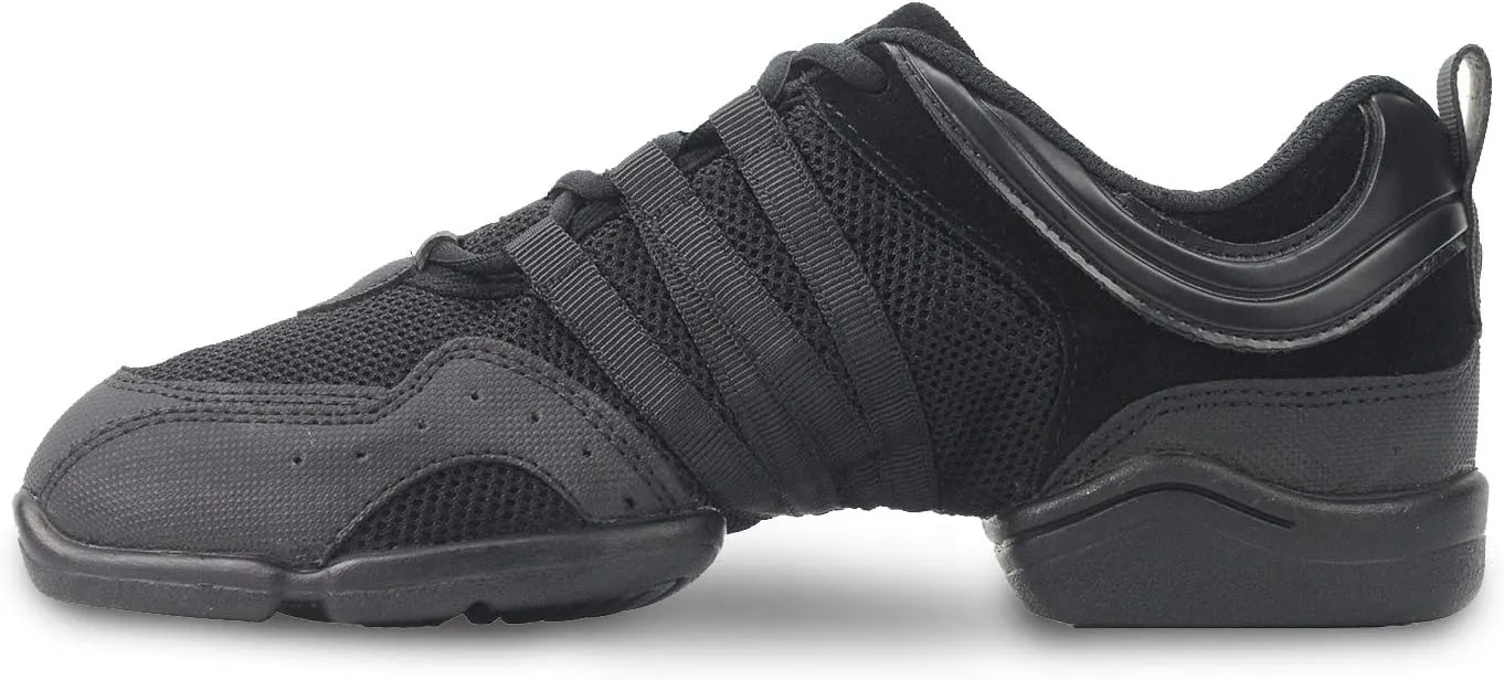 Low profile dance sneakers in mesh with microfiber. Streamlined split-sole with spin dot. Ideal for stretching exercises on the floor, exercising in the gym, in and outside.