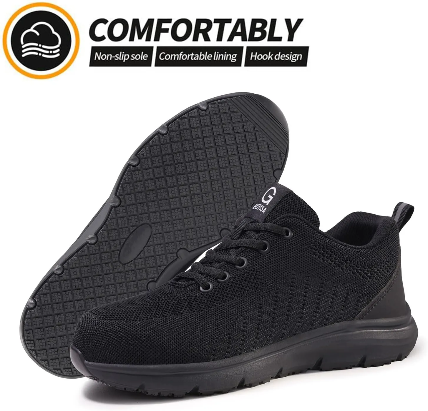 - Air Cushioned and Lightweight Sole: The work shoes use our latest advanced design air cushioned sole to provide more suitable cushioning, so you will feel very soft, and light, which will reduce standing fatigue.