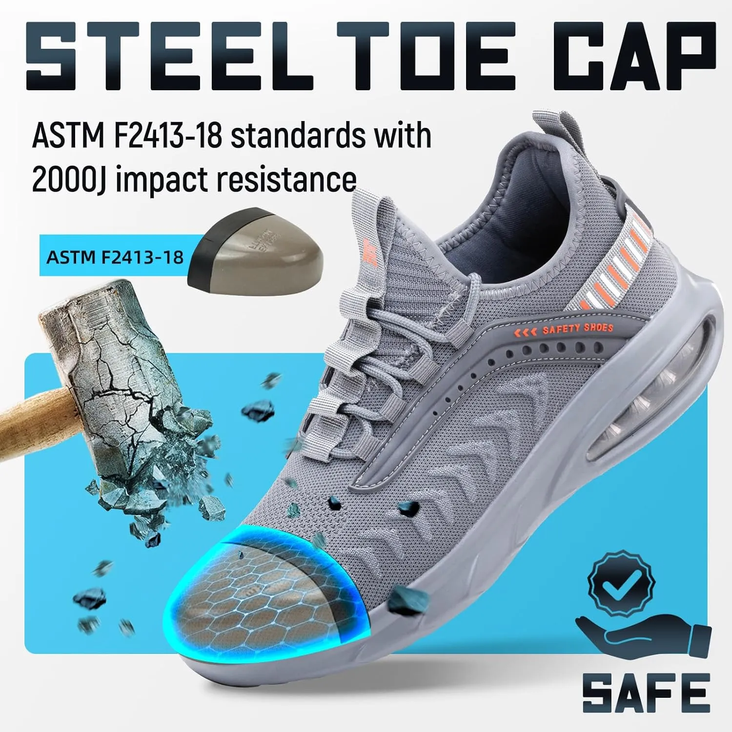 Steel Toe Shoes for Men Work Women Lightweight Air Cushion Sneakers Slip Resistant Safety Work Boots Indestructible Shoes