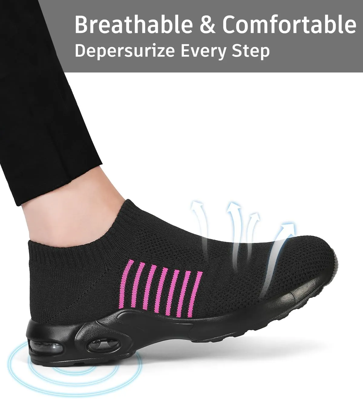• Cushioned MD Sole & Sneakers DesignThe comfortable work shoes women's soles are made from a wear-resistant MD outsole with air cushion, which provides shock absorption and support while you are long time walking or standing, it delivers all-day comfort. The sneakers design with a fashionable appearance, our non slip work shoes women come with function and a stylish look for your daily.