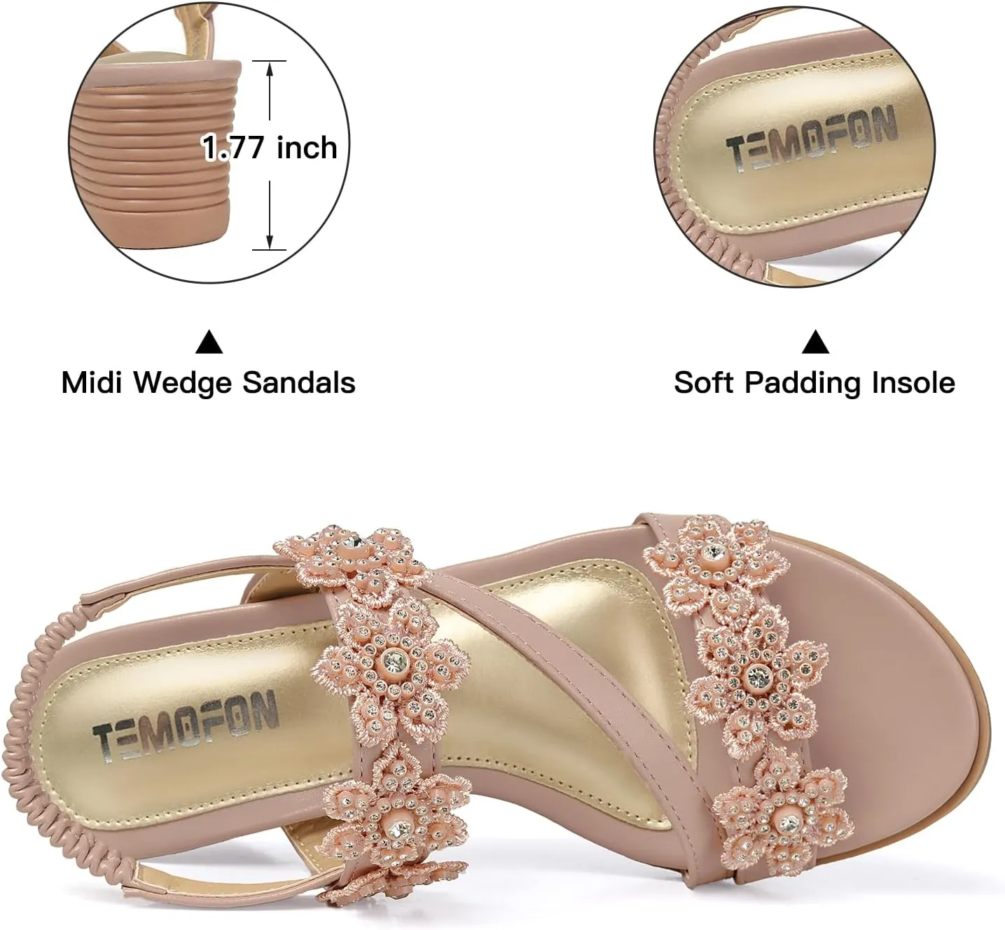 • Wedge Sandals for Women Design: Designed with elastic ankle strap, easy to put on and take off, open toe sandals for women, slip-on summer platform sandals, wedge heeled sandals, flower rhinestone sandals for women, wide width sandals, sandals women dressy summer, womens sandals dressy casual low heel, womens wedges has a flexible size adjustment, comfortable wedge sandals for women.
