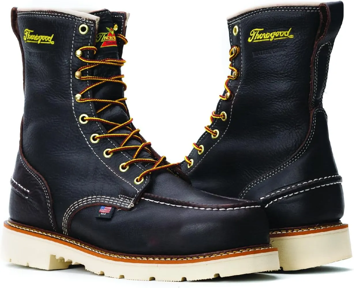 - THOROGOOD The worked design means that the 1957 series steel toe boots are ideal for a range of outdoor and industrial applications: boots for a carpenter, construction worker, crane operator, electrician, HVAC technician, iron worker, molinwright, plumber, welder or anyone else who needs comfortable safety protection for their toes while doing dirty work