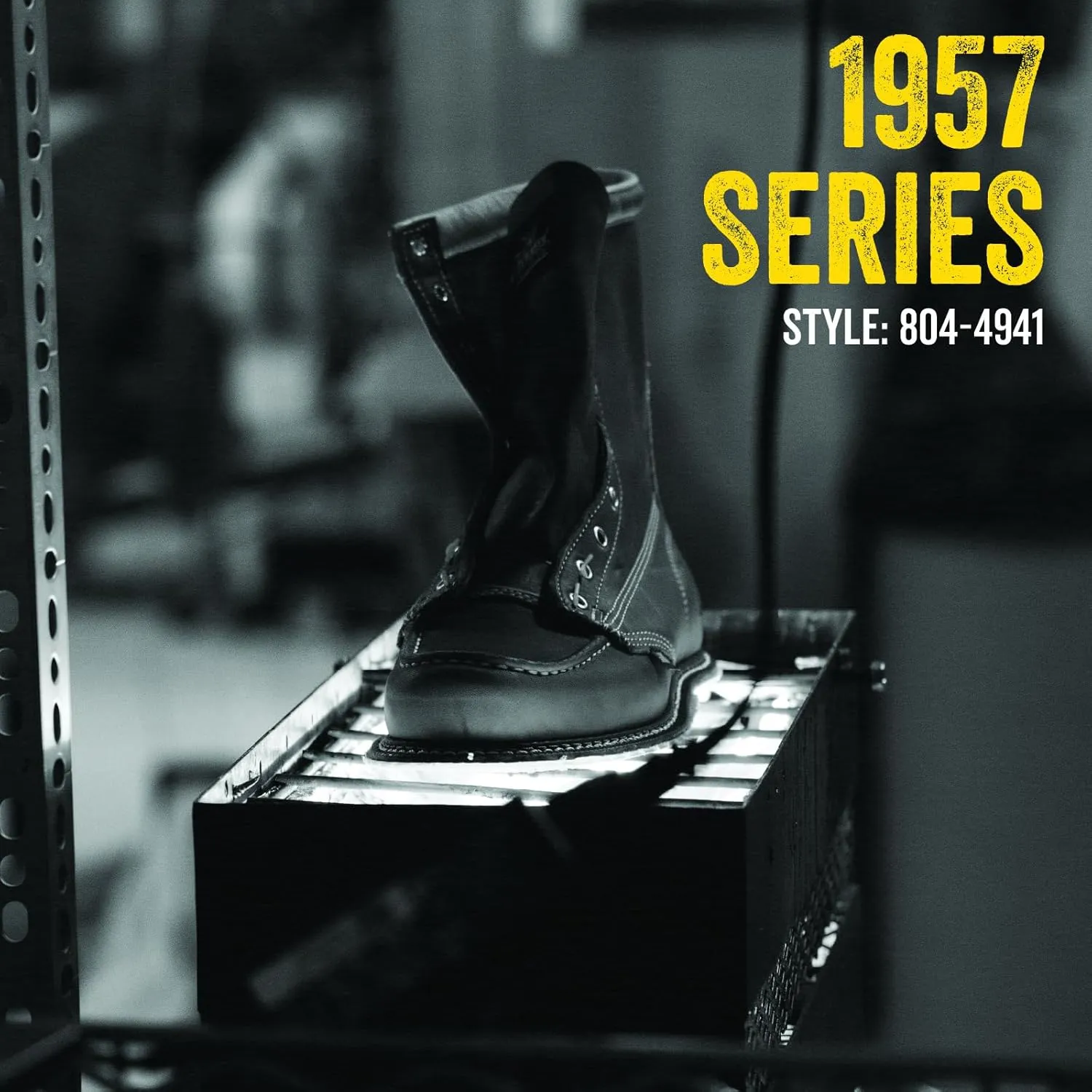 - The men's steel toe boots protect your feet from impacts and compression hazards on site, while the design keeps them light and flexible, making the 1957 series one of the best safety boots for men with hazardous jobs. Complies with ASTM F2413-18 safety standards