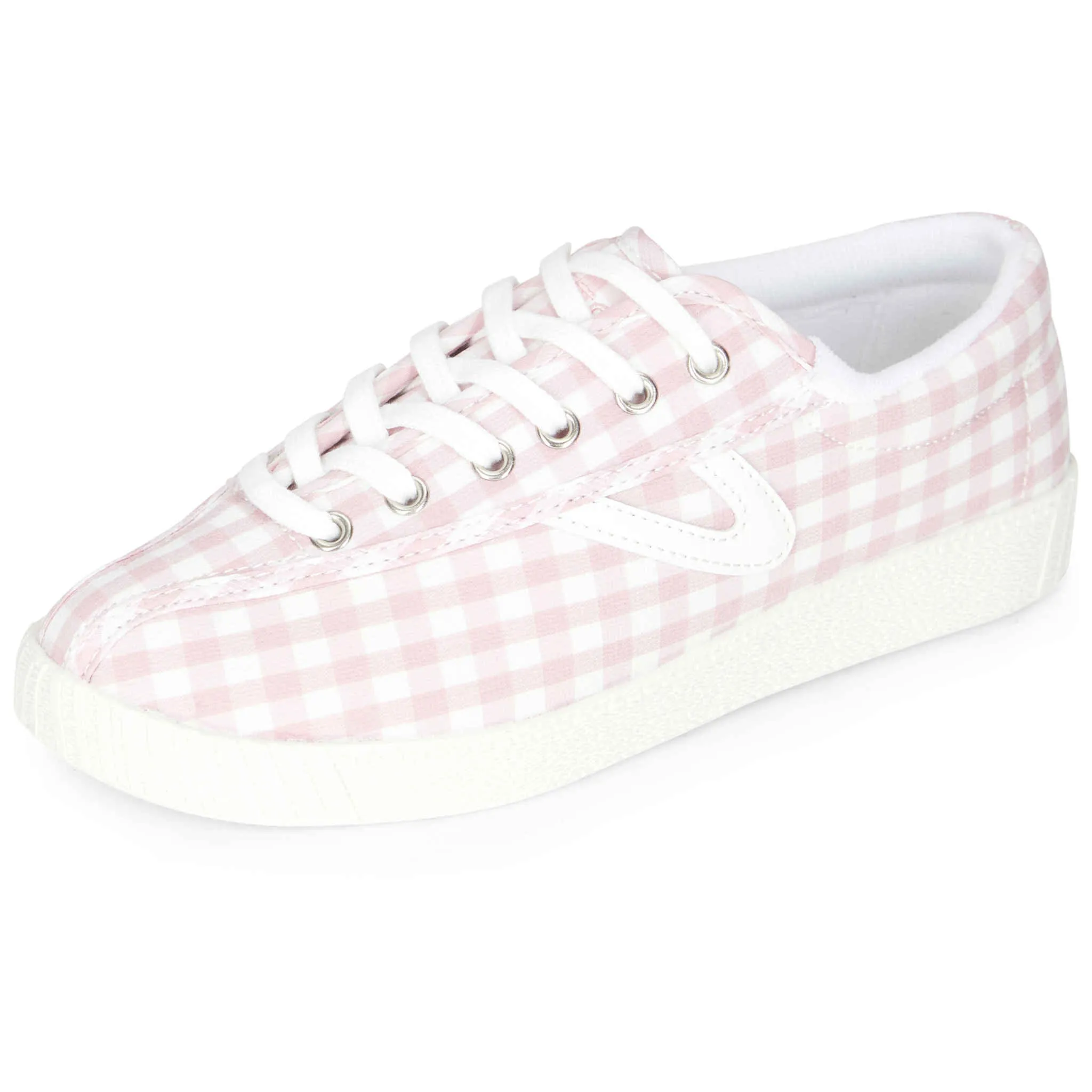 The white and pink gingham design on these Tretorn women's sneakers is not only eye-catching but also unique. A sturdy rubber outsole, a soft EcoOrtholite insole and breathable uppers complete the package, making these sneakers not only stylish but also comfortable. Match them with your favourite dress, jeans, or skirt for a casual yet chic 90s look with a pink twist.