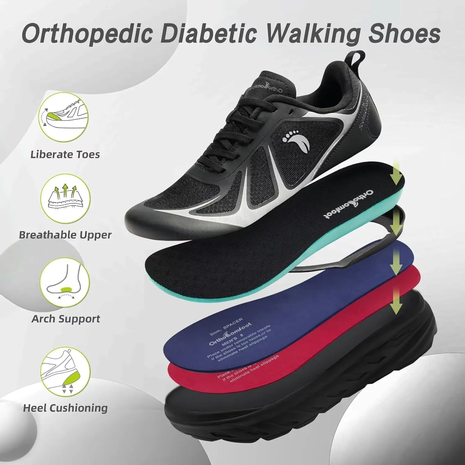 - Wide Toe Box: The wide toe design of diabetic shoes helps to reduce pressure on bunions and hammertoes by providing ample space and allowing the toes to spread out naturally. accommodate the extra toe movement needed for swollen feet. This can alleviate discomfort and pain, allowing for greater comfort and mobility